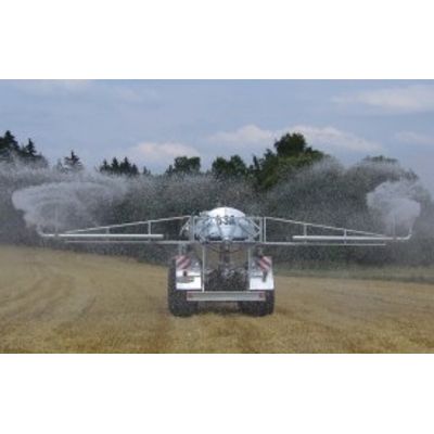 The BSA double nozzle spreader which is produced in-house, is based on the  swivel spreader principle. Due to a boom which can be folded away a spreading width of up to 27m can be reached. For a safe transport on the street an arrester for the arms and brass gate valve is mounted before the outlet.