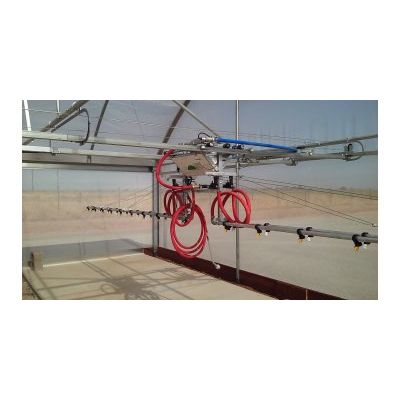 The central frame design of a double rail boom irrigation system allows for the ability to have a center walkway down the length of the bay. When combined with Cherry Creek’s Network Irrigation Controller, the Double Rail Boom will handle the most complicated of greenhouse irrigation requirements, while assuring the precise application of fertilizers and chemicals. With the ability to irrigate the left or the right side completely independently of one another, this automatic waterer for greenhouses has full control over every application. With the stability of running on two rails, boom sway is eliminated.