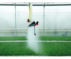 The TO56-2R model is the most advanced and reliable irrigation system for your cultivation. Double rail system, interaxle spacing 1160 mm, with or without central walking corridor. Moving trolleys in galvanized steel. Fixed motor with steel cable, adjustable speed from 3 t 16 m/min. Water pipe in polyethylene 32 mm or 40 mm, double or single stainless steel pipes with nozzles spaced at 50 cm for irrigation or treatment. Electrical supply 230 V – 0,4 kW – 50/60 Hz.