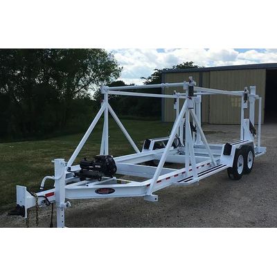 Introducing the LRS 0214 Self-Loading Double Reel Trailer, engineered for efficiency and reliability. With a GVWR of 14,000 lbs. and a reel capacity of 10 ft. x 60 in., this trailer simplifies heavy-duty hauling tasks. Its hydraulic system, powered by a 5 HP Honda motor and 303 hydraulic fluid, facilitates seamless loading and unloading of reels. Equipped with a robust frame, electric brakes, and standard LED lighting, it ensures safe and secure transport. Finished with PPG industrial urethane paint in various colors, this trailer not only performs but also looks the part.