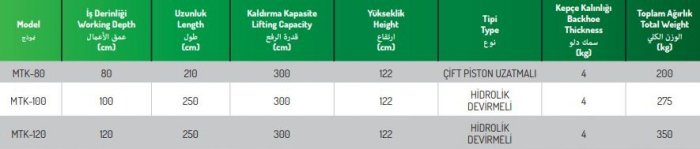 Model : MTK-80. Working Depth : 80. Length : 210. Lifting Capacity : 300. Height : 122. Type : ÇIFT PISTON UZATMALI. Thickness : 4. Total Weight : 200.