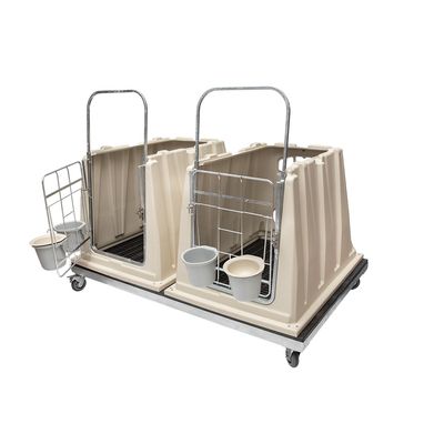 The Double Starter Calf Hutch combines 2 starter units on a raised base that can be equipped with legs or wheels to maximize efficiencies. Boosting producer convenience, the Double Starter Calf Hutch allows for customized care for newborn calves. Easy access to the calf, effortless maneuverability, and convenient cleaning features are just a few of the many built-in features and additional options that keep both the calf and the producer in mind.
