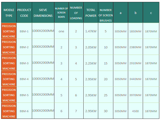 Pulses, nuts, seeds, etc. that have been pre-cleaned or do not need to be cleaned before. It is designed to separate different sizes and fractures in grain structured products. It is generally used as the final control sieve in the process.