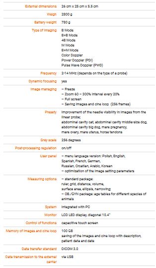 Ultrasound scanner with a high quality imaging for the diagnosis of small animals and horses. Perfect for veterinary mixed practises.