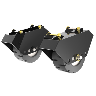 Kit includes Powder Coated Steel Frames, 9″ Vulcanized Rubber Wheels with Hex Bearings, Mounting Hardware, Standard Hex Pins, & Owner’s Manual