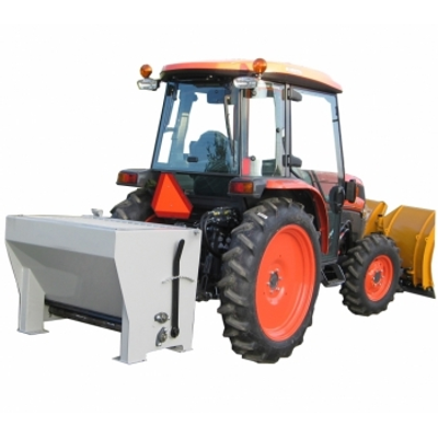 Drop Salter for skidsteers and tractors. 0.5 cu/yds capacity. PTO high strength, corrosion resistant gearbox. Heavy duty internal agitator prevents clumping. Alternative hydraulic motor drive option.