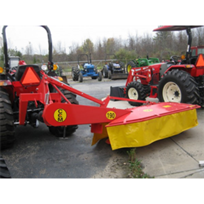 NEW HAYMAG T190 Drum Mower- 35 PTO hp min- 75" cut, durable design for harvesting all hay types, 6 acres/hr, Powder painted with all moving components balanced, weighs 1000#, 4200# tractor min needed for safe transport position operation (addl. fr wghts MAY be needed on some tractors), mower for harvesting all types of hay, 3 quick change blades per drum, safty release to prevent damage, Cat 1- 3 point hitch, comes complete with a PTO with an over-ride clutch, belt driven, exterior hyd not needed for transport, mows as fast as you can ride, mows up to 6 acres/hr, will not clog up in any conditions under curtain view.