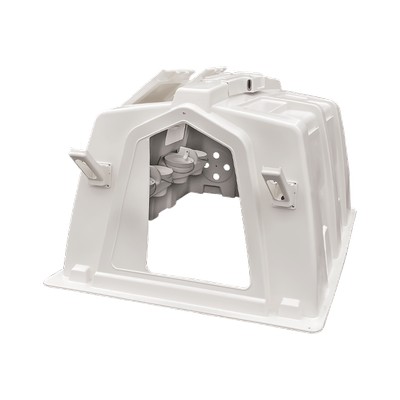 DUAL XL DELUXE HUTCH: An Industry First! For Paired Calves up to 8 weeks old. Molded from super strong, heavy gauge plastic. Completely opaque. Comes with 2 Side Doors for Bedding or Feeding. Comes with 2 Double Holders and 4 Pails. Includes: Top Vent, All-In-One Rear Door, 3 Bottom Airflow Vents.