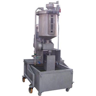 A specially designed particle dispenser is used to precisely control particle flux rate. The unique setup allows for the particles to be fed just ahead of the nozzle to ensure homogenous mixing before dispensing through the nozzle.