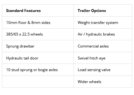 Redrock trailers are designed and built to operate in the most demanding of agricultural environments. Superior design techniques are applied to all aspects of the trailers from a strong and stable chassis to the tough, modern body. Available in 14, 16, 18, 20 & 24T Tonne models.