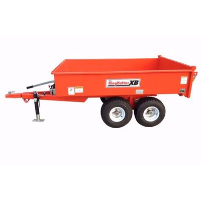 1.5 TON DUMP TRAILER / W PUMP KING KUTTER`S XB-DUMP TRAILER is ideal for landscaping, construction and general gardening. This trailer features a unique two-way tailgate that will open from the top (like a pickup truck) to load or unload large bulky items or will open from the bottom (like a dump truck) for spreading gravel, dirt, sand and many other materials. The tailgate features a cam over latch to control spreading applications. Other features include swivel style hitch and a double diaphragm hydraulic pump for easy dumping. This unit is constructed with 12 gauge formed steel sides and end panels for maximum strength and durability. The XB Dump Trailer is designed for off road use not to exceed 20 mph.