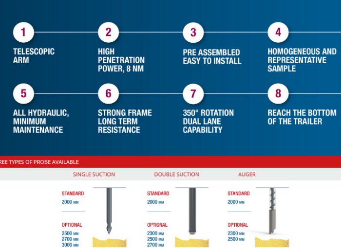 Pre-assembled easy to install suitable for any kind of cereals and flours. Homogeneus and true samples delivers the samples up to 100 meters.