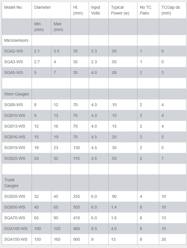 The need for this new technology is great because it is an affordable and practical way to measure the water use by plants of agricultural, economic and ecological importance. Plants in greenhouses, nurseries or natural environments can be measured with the same ease. Dynamax introduced the first sap flow sensor prototypes in 1988 and today offers a full range of sensors from 2 mm up to 125 mm.