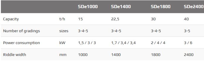 • SDe 1000, SDe 1400, SDe 1800, SDe 2400 (width in mm)