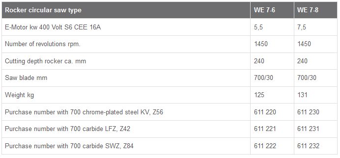 Convenient production with simple all-steel construction – protective device for more safety, according to the new standard DIN EN 1870-6 – ergonomically arranged rocker, for easy operation – wide and large transport wheels with extendable transport rod as standard – drive directly via electric motor, optionally with 5,5 kw or 7,5 kw.