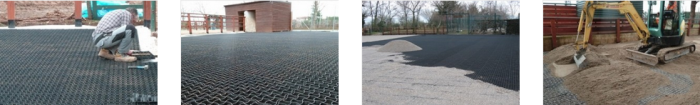 (crushed stone with a variable grain of 3-10 mm) of approx 15-20 cm. Possible bedding layer with siliceous sand, properly levelled, approx. 4 cm. Laying of the geotextile prior to the development of the flooring. - PREPARATION OF THE PAVEMENT WITH EASY RIDE GRIDS
