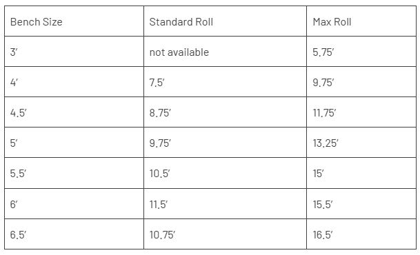 All our benches are made to order for each customer. Ebb & flow rolling benches are available in many widths. We currently stock 13’, 2’, 3’, 4’, 4.5’, 5’, 5.5’, & 6’ wide trays at our manufacturing warehouse. Many other widths are available as a special order. The bench lengths are completely custom, but generally must be at least 7½ feet long as a minimum. Depending on our backlog of orders, we are usually able to ship orders of our stocked widths in about 6-8 weeks. Other special widths may have longer lead times. View the chart for rolling distances.