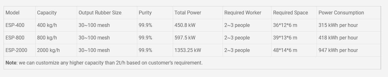 Ecoshred tire milling line mainly contains four types of machines: tire shredder, rasper , granulator and rubber miller.
