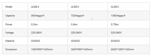 - We mainly have three capacities for choose: 3600eggs/h, 7200eggs/h. and 10800eggs/h. We also offer professional eggshell and liquid separating machine for you.