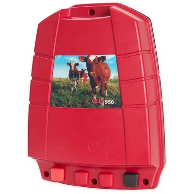 Olli 950: A powerful basic energiser for more demanding use. Olli 950 is an easy-to-use basic mains energiser with enough power to electrify even a long fence. Snappy 4.8J output energy keeps horses and farm animals efficiently on the inside and wild animals on the outside of the electrified fence. 950 indicates the condition of the fence: The InfoLED warns if the fence voltage drops below 2,500V and the condition of the fence should be checked.
