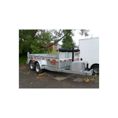 INTERIOR BED DIMENSIONS 72` X 144` TARP & ROLLER KIT INCLUDED 2 X 5200LB AXLES (10,400LB GVWR) 4-D-RINGS 6-BOLT RADIAL GALVANIZED RIMS REAR COMBO DOOR WITH TIE BACKS 12K FRONT QUIK RELEASE JACK 7 TON FRONT CYLINDER HEAVY DUTY MARINE GRADE BATTERY 110 VOLT CHARGER KIT 11GA STEEL BOX CONSTRUCTION ADJUSTABLE COUPLER CONCEALED LED LIGHTS ALL THE WAY AROUND CANADIAN MADE- GALVANIZED FOR OUR CANADIAN CLIMATE