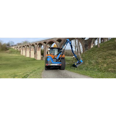 The E-KONDOR represents the next generation of electrical technology, providing improved performance and driving comfort. This electric mower is on par with its hydraulic KONDOR counterpart in terms of kinematics and design. The E-KONDOR offers the advantage of an electrically driven rotor and the new intuitive R-TOUCH touch control.