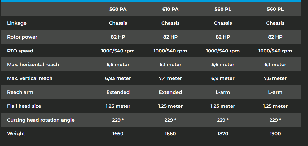 - Rotor speed from 500 to 3000 rpm, regardless of tractor PTO speed