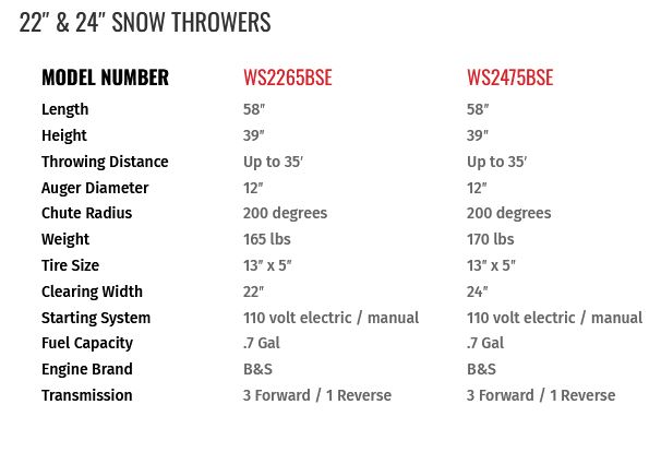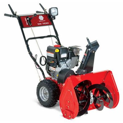 The Snow Thrower features an efficient friction disc transmission, a built-in headlight and a manual, 110 volt electric starting system. With a 12 inch impeller, the Snow Thrower offers a 35 to 50 foot throwing distance and a 200 degree chute turning radius, snow removal is made easy with this machine.