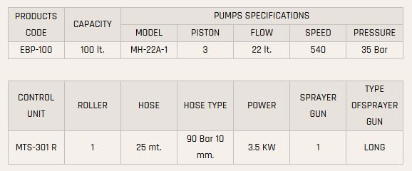 - 1 pcs pistol, 1pcs 25 mt. hose (10 mm of 90 bar) and 1 pcs hose reel are standard equipment of sprayers. Our company have 4 different type pistol this are: long pistol, long trigger pistol, short pistol, short trigger pistol.