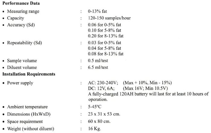 Electronic Milk Tester works on the photometric measurement of light scattered by the fat globules present in the milk sample. The measuring procedure follows the conventional system of dilution, mixing, homogenisation and photometric measurement.
