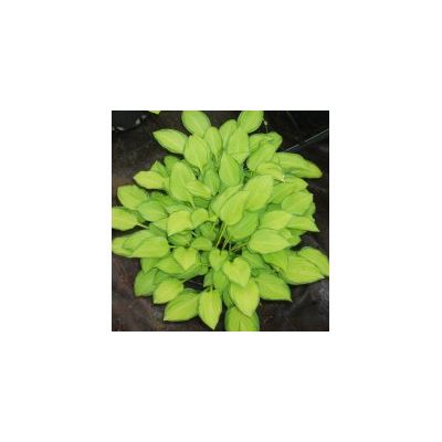 Small. Bright Lime green- yellow leaves with darker green borders which give a fresh, tropical appreance. A rapid grower with attractive purple flowers in mid summer.