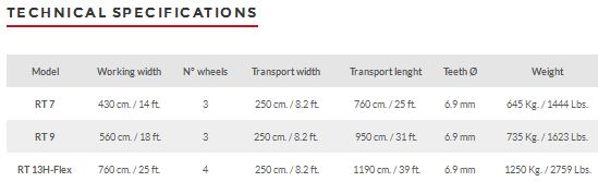 EnorossiModel RT 7-9 / RT 13H-Flex -Pull Type Hay Rake