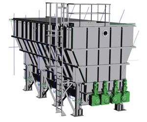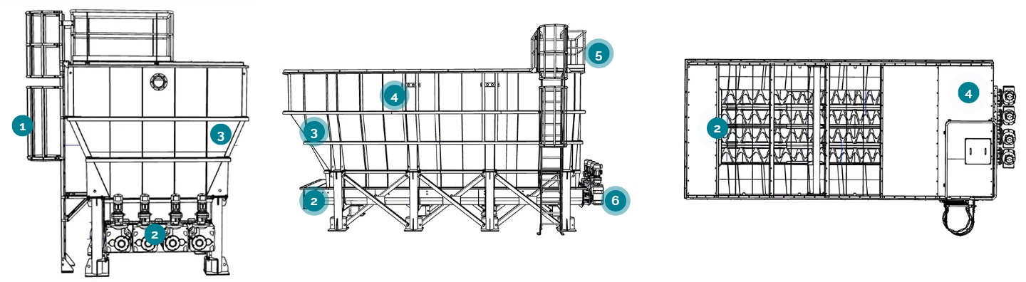 The shape of the discharge case is modular according to the configuration of the implantation and according to the equipment chosen further for the transfer of the sludge. This version is also used for the recovery of sludge under filter press (Enviroduo).