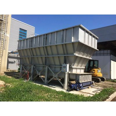 The Enviromulti storage and extraction silo is designed for difficult products such as sewage sludge. Enviromulti extractors consisting of several screws form a moving bed at the bottom of the tank. Thanks to the rotational movement, but also by the variation of the pitches and directions of rotation given to each of the screws, the sludge collapses in the threads and is directed towards the discharge box. The management of rotational speeds by variable speed drive associated with the partial or total use of the screws makes possible the regulation of the extraction flow rate. Multi-screw technology is also used for the recovery of sludge under filter press (Enviroduo).