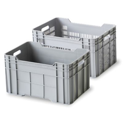 EUROPLAST box made of HDPE (s. image) for transport and storage. Thanks to the optimised structure and curvature of the walls, the available capacity is optimally utilised. Thanks to its handy size, it can be used in agriculture, but also for industrial applications.