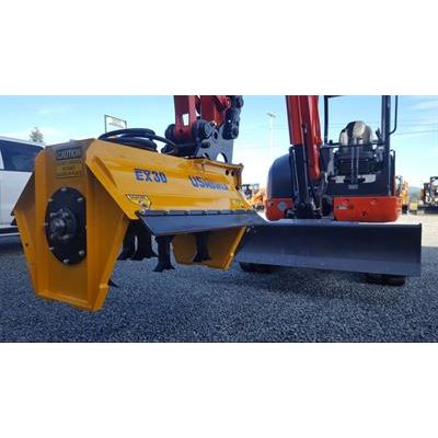 The EX30 Excavator Flail Mower cuts and mulches up to 4" trees, shrubs, vegetation, grass and weeds. Built for parent machines from 4000-10000 lbs. Sold complete with custom mount.