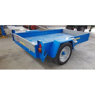 The maximum load capacity at full load is 1500kg. The body can be tipped mechanically by gravity or fixed. The trailer is usually built like a track carrier. in fact it is mainly used to transport mini tracked tractors or wood obviously equipped with lateral poles.