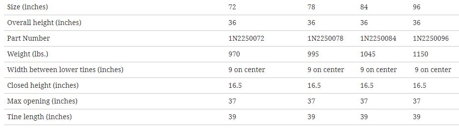- Gusseted tines for added strength • 4" x 4" x 1/4" tubing.