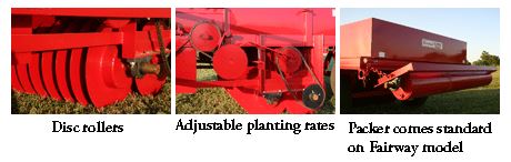 The Fairway Planter is ideal for planting athletic fields, golf courses, recreation areas, sod and turf farms, areas surrounding ponds or anywhere you want to keep the land surface as undisturbed as possible. Fairway planters broadcast sprigs rather than cultivate the ground.