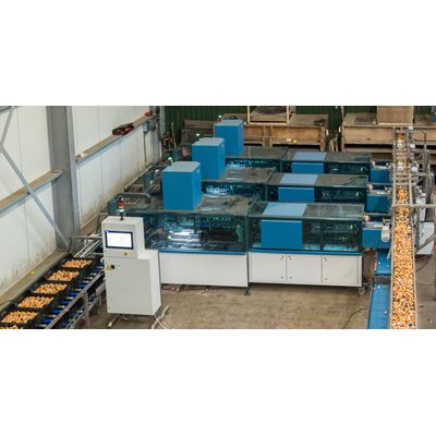 The Falcon bulb planter owes its name to the Falcon, an extremely fast and one of the most accurate bird species. Bulbs can be planted automatically with the Falcon. The Falcon is suitable for potting soil and/or water forcing cultivation. Bulbs are supplied from a turner. From there they are automatically guided to the Falcon(s). The bulbs are singulated in the machine and placed on a so-called cup. This cup is passed through a vision box with a sphere of 360 degrees. Based on the coordinations generated by the vision system, the sphere is positioned correctly, with the shoot pointing upwards. The now well placed bulb is picked up by the beak of the Falcon and placed in the bin.