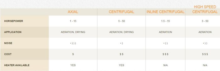 Keeping your grain in condition throughout its time spent in storage is the most vital aspect to any storage system. GSI designs and manufactures complete line of rugged aeration and grain conditioning systems to help maintain grain quality. Choose from a variety of high efficiency vane axial, centrifugal, and inline centrifugal fans and heaters, all with features designed to reduce costs and boost performance.