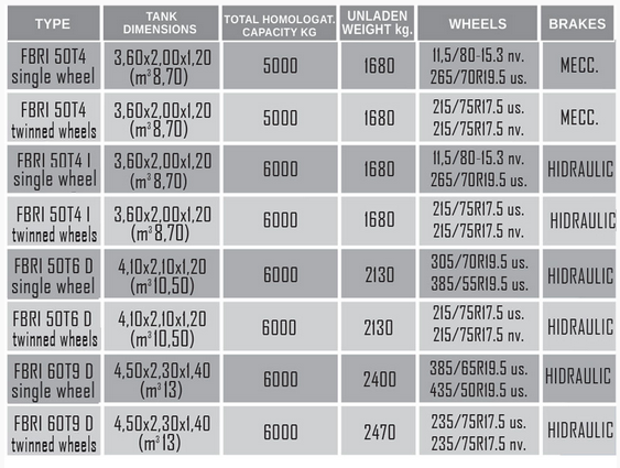 Single axle homologated with sealed mechanical tailgate iron or stainless steel body.