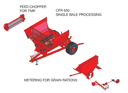 The CFR650 is expandable to meet your growing operation. Add a Feed Chopper to further process the feed. Add Metering to add grains, pellets or concentrates directly into the feed.
