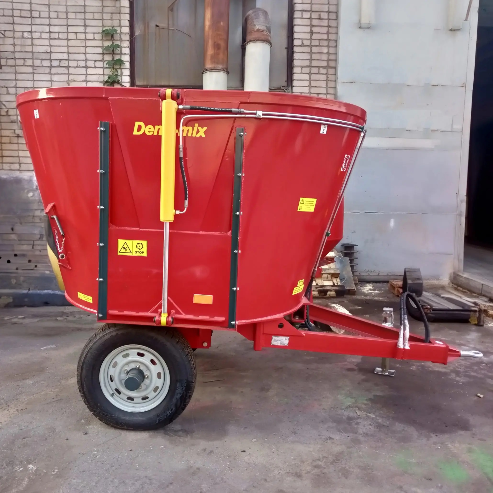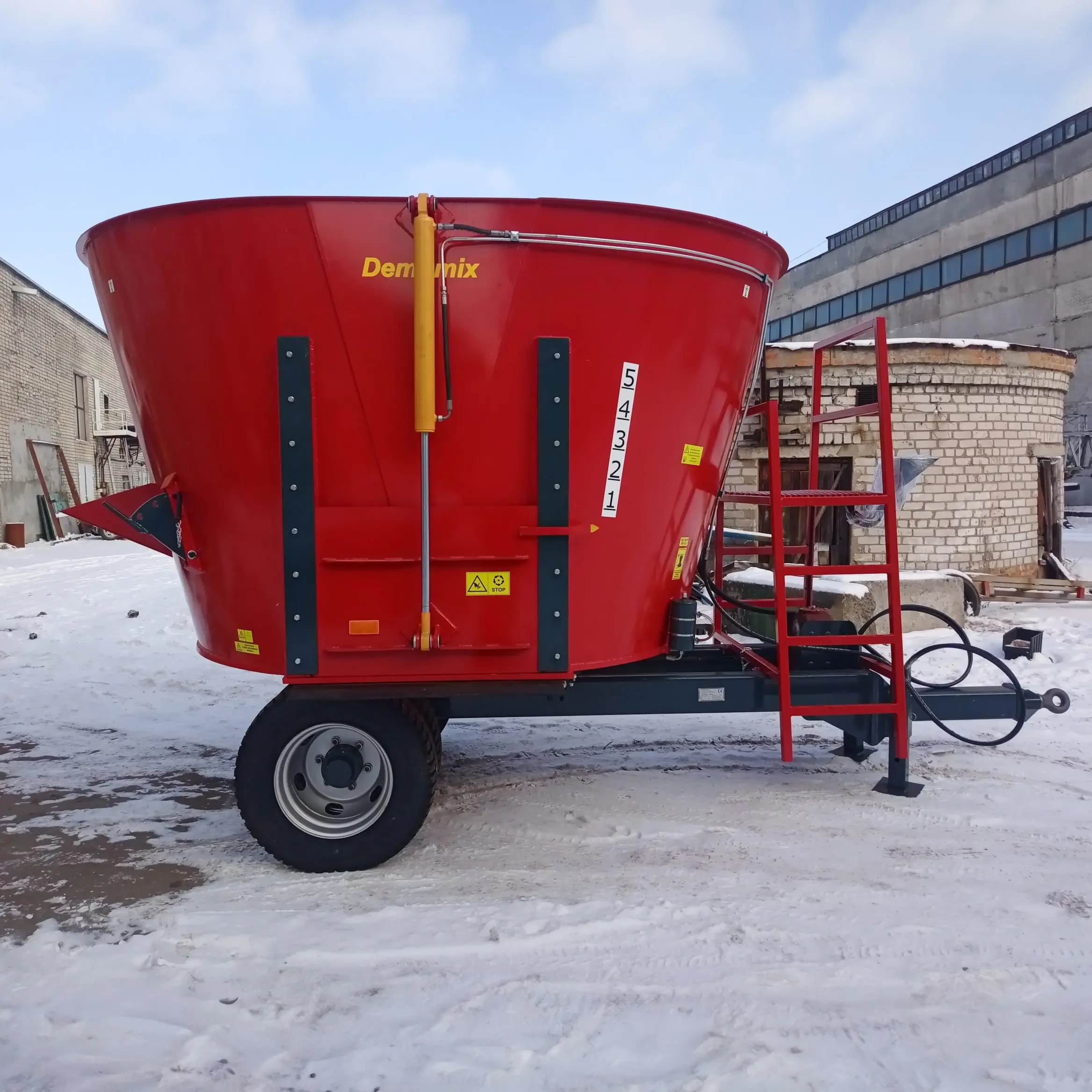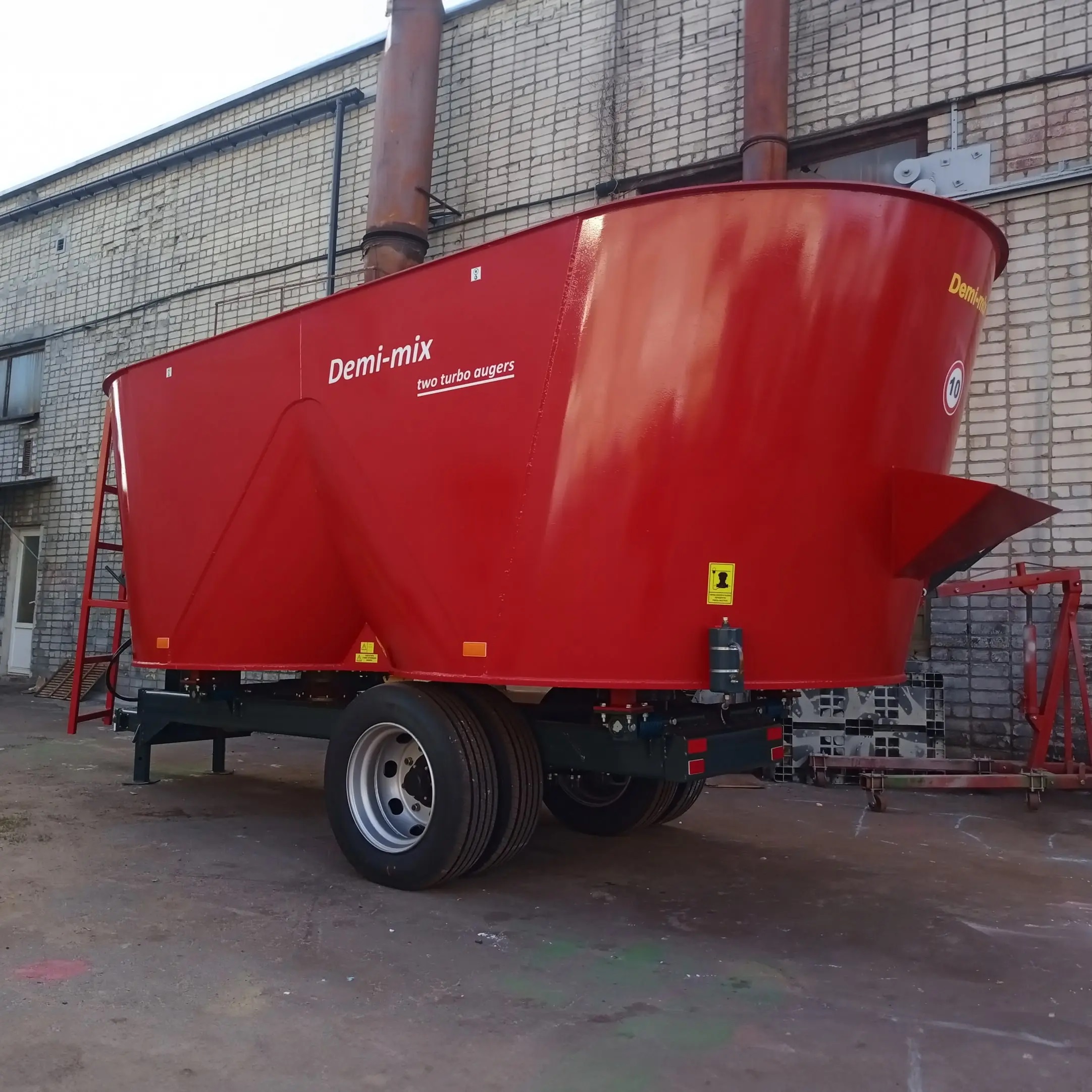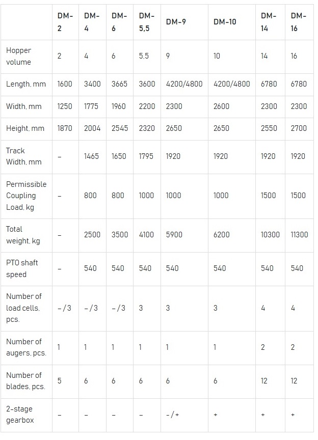DM is the optimal solution when feeding mixed rations. Mobile feed mixers can be used to prepare complete feed mixes that promote rationed feeding, increase intake levels, and reduce feed wastage. The main functional element of this feed mixer is the control unit. The animal technician is able to programme up to 20 recipes for different technological groups of animals, operating with fifteen components. This is done by entering the number of animals and the ration per head into the control unit`s memory. The control unit calculates the total amount of each ingredient and sounds a signal when the desired weight is reached. At the same time, the display continuously shows the amount of feed to be loaded.