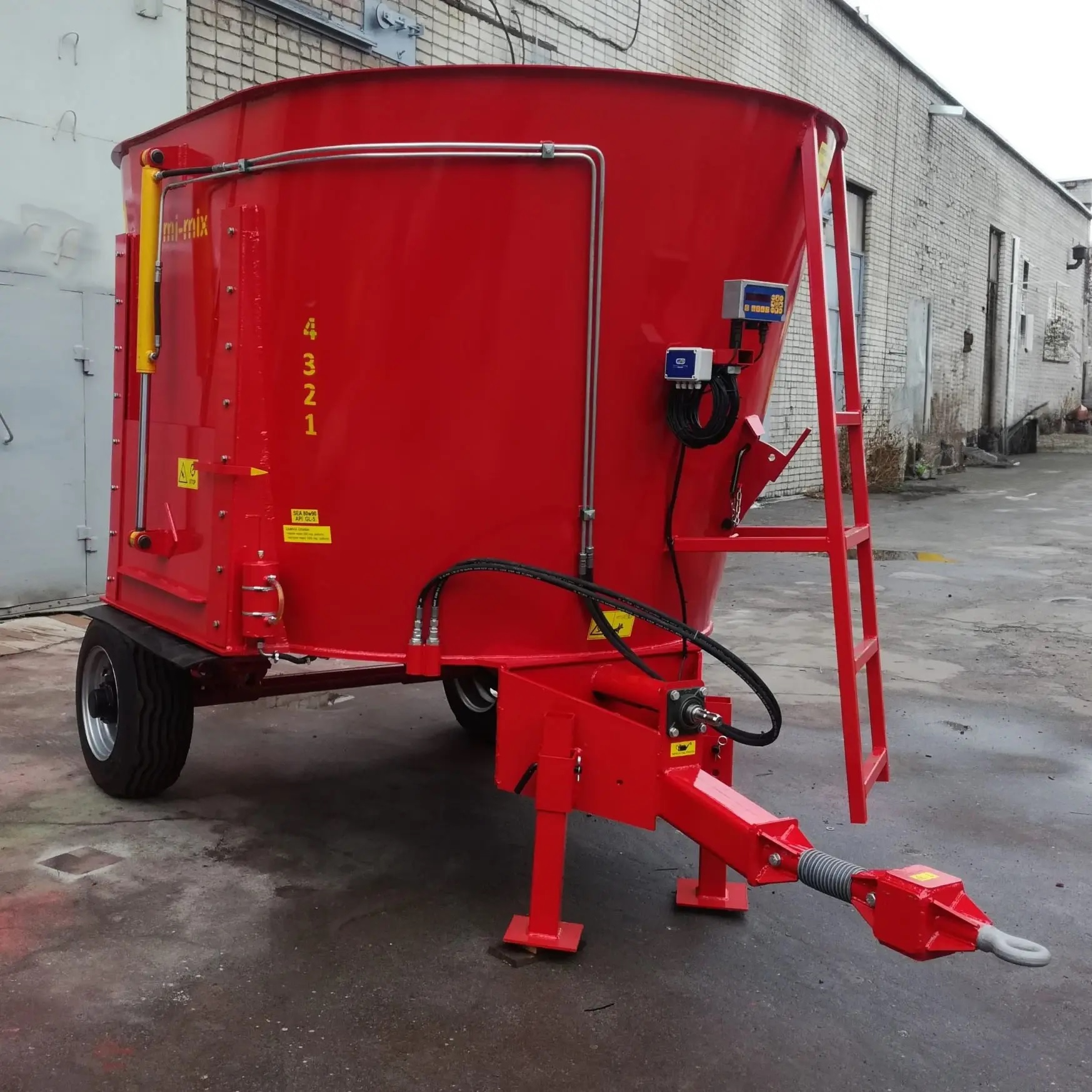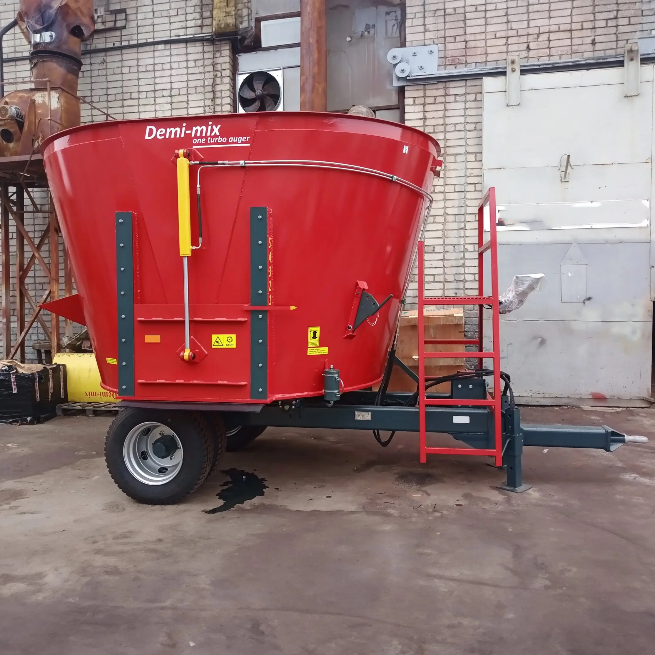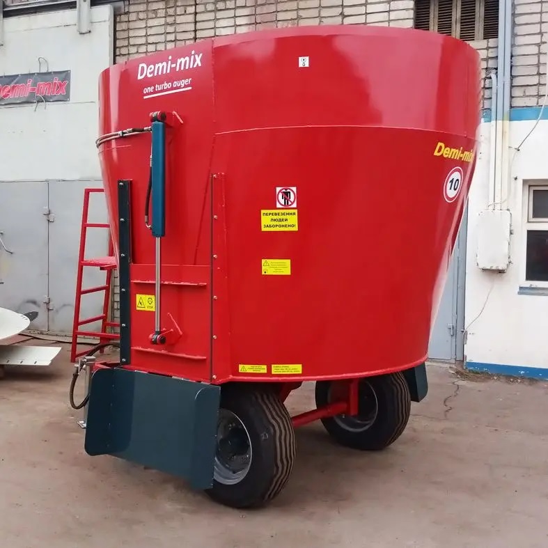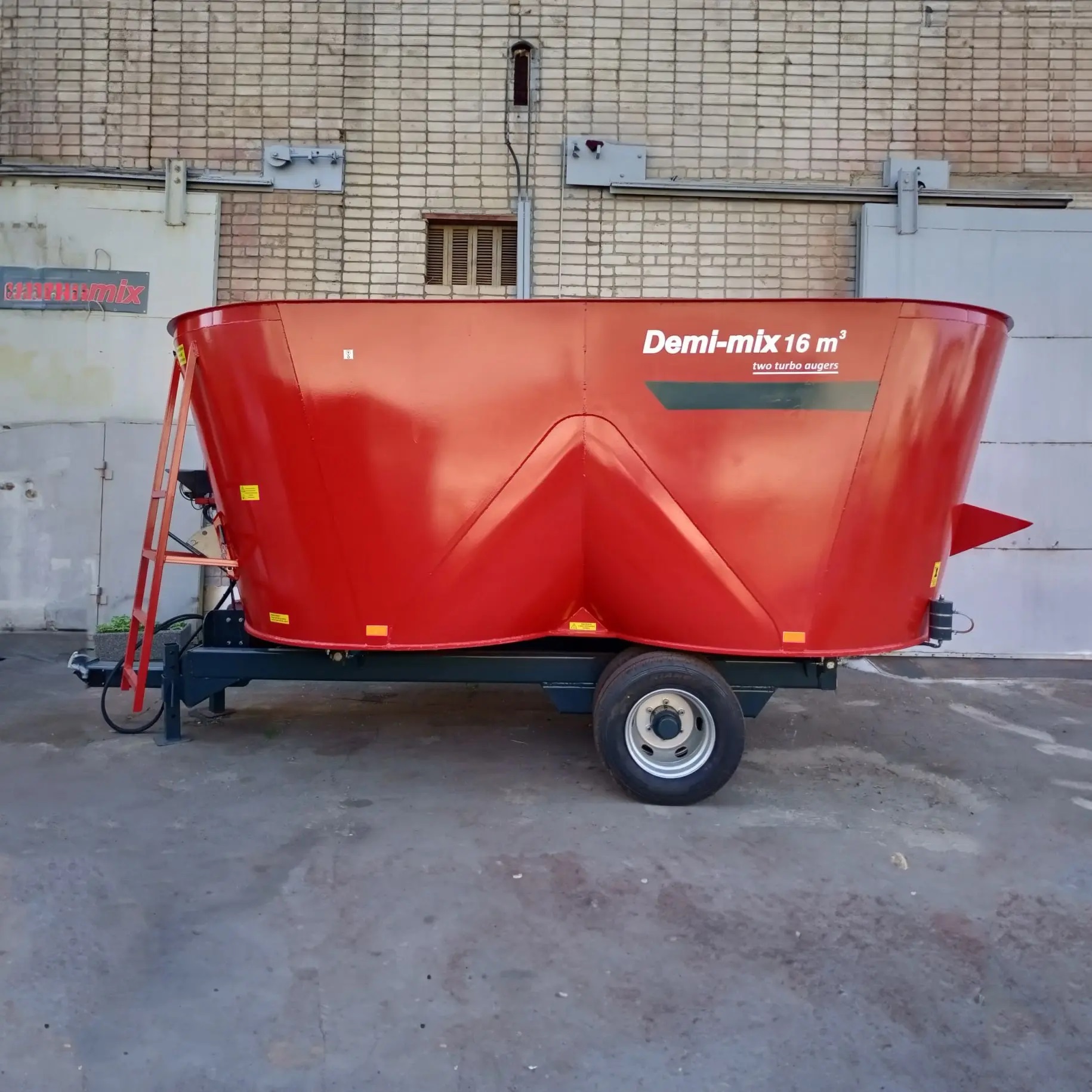 DM is the optimal solution when feeding mixed rations. Mobile feed mixers can be used to prepare complete feed mixes that promote rationed feeding, increase intake levels, and reduce feed wastage. The main functional element of this feed mixer is the control unit. The animal technician is able to programme up to 20 recipes for different technological groups of animals, operating with fifteen components. This is done by entering the number of animals and the ration per head into the control unit`s memory. The control unit calculates the total amount of each ingredient and sounds a signal when the desired weight is reached. At the same time, the display continuously shows the amount of feed to be loaded.