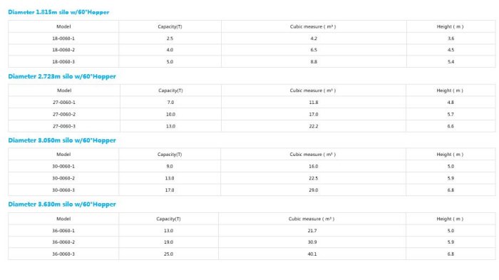 - 4 different specifications and 12 model numbers can meet the different feed storage requirements.
