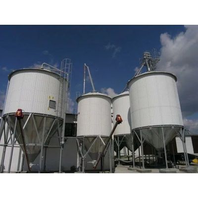 Capacity up to 100 m³, conical funnel constituting the bottom of the silo, double jacket of galvanized steel, protected by a protective coating, no housing or roofing required, it can stand alone or in a technological line, it is possible to protect it with a thermal insulation layer against condensation.