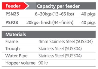 Features & Advantage; Deeper feed trough. Less fedd loss. High seperation wall between feed trough and water bowls. No sharp edges, no Conors, eliminates bridging or feedfrom condensation. Built of only Stainless steel and plastic that allows long life with high level of higiene. Swedish Stinav nipples are eauipoed.
