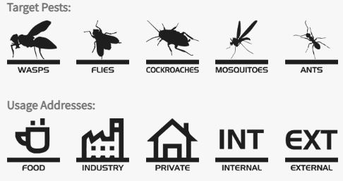 Characteristics: Emulsifiable concentrate insecticide containing Permethrin and Pyrethrum extract synergized with Piperonyl butoxide that confers it a killing effect and a long lasting action. The product consists of a liquid formulation with non-dangerous solvent and vegetable derived co-formulants.