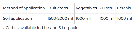 N-Carb are applied in soils to improve soil fertility, plant vigour, to enhance quality and quantity of yield. It is available in liquid form are used in both organic and conventional agriculture.